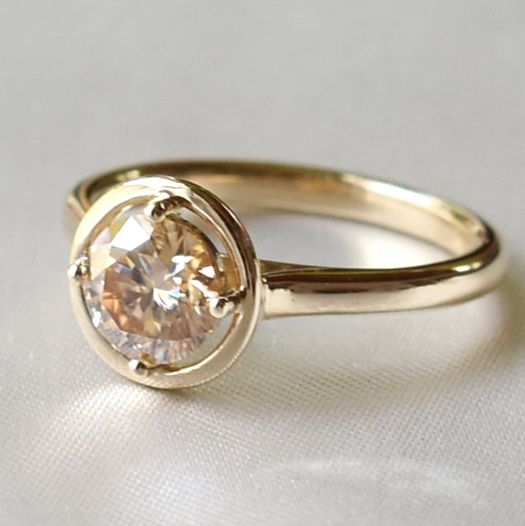 ローズカット ラウンドHaloリング エンゲージリング 10K/18K YG/PG/WG 【受注生産】