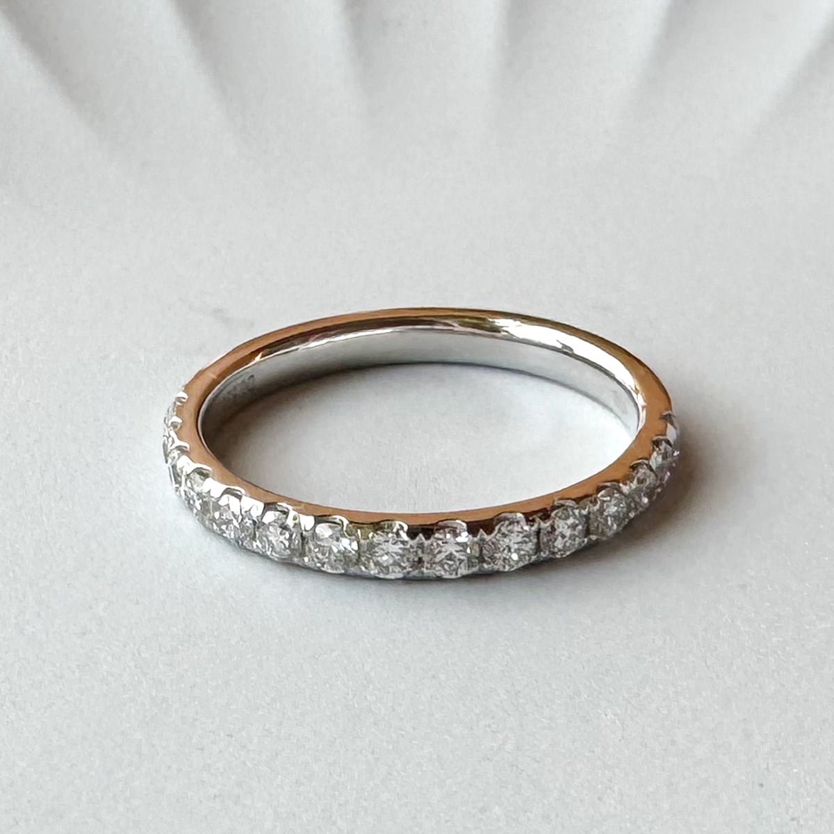 こちらの写真は装着にも使いやすいハーフエタニティリング。(リングの半分がダイヤモンド)