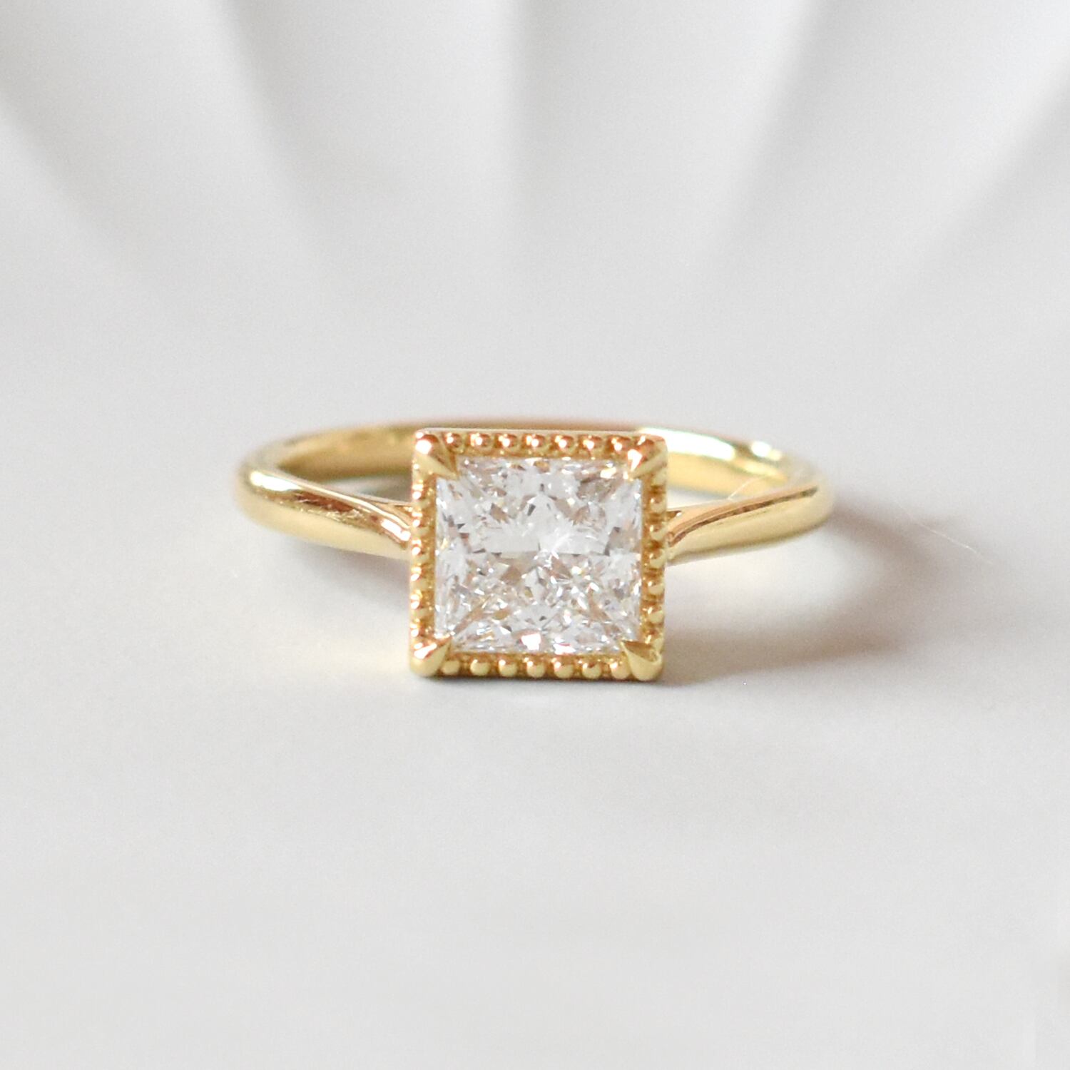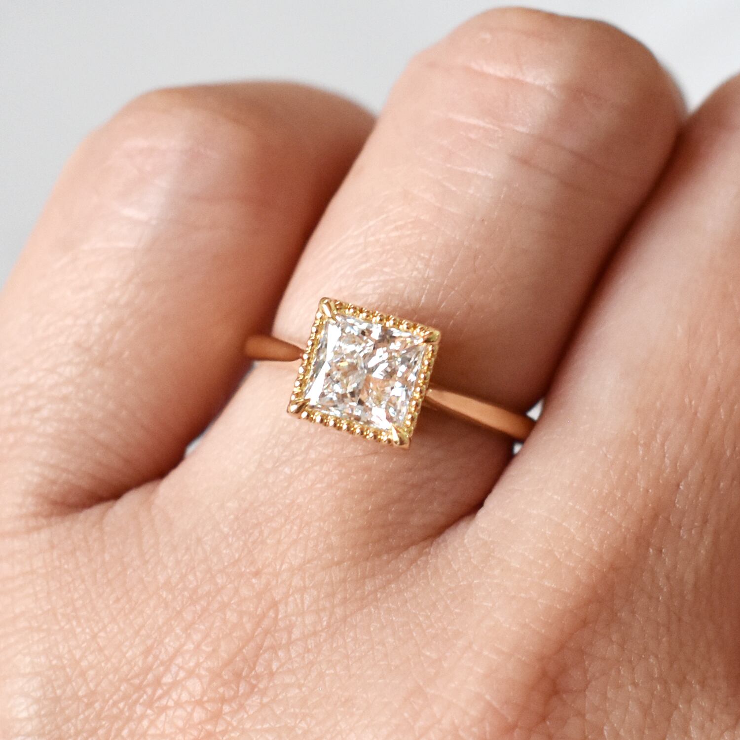 ラウンドカットよりもより細やかな輝きを持つプリンセスカットのラボダイヤモンドリング♪