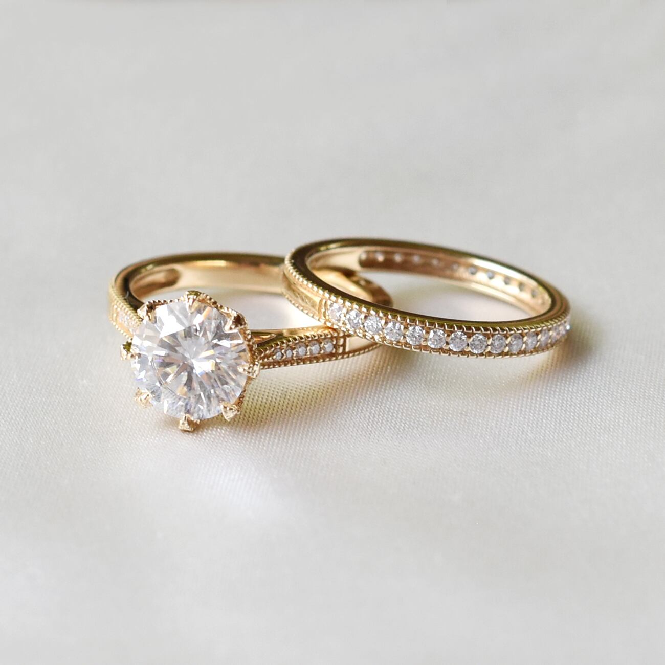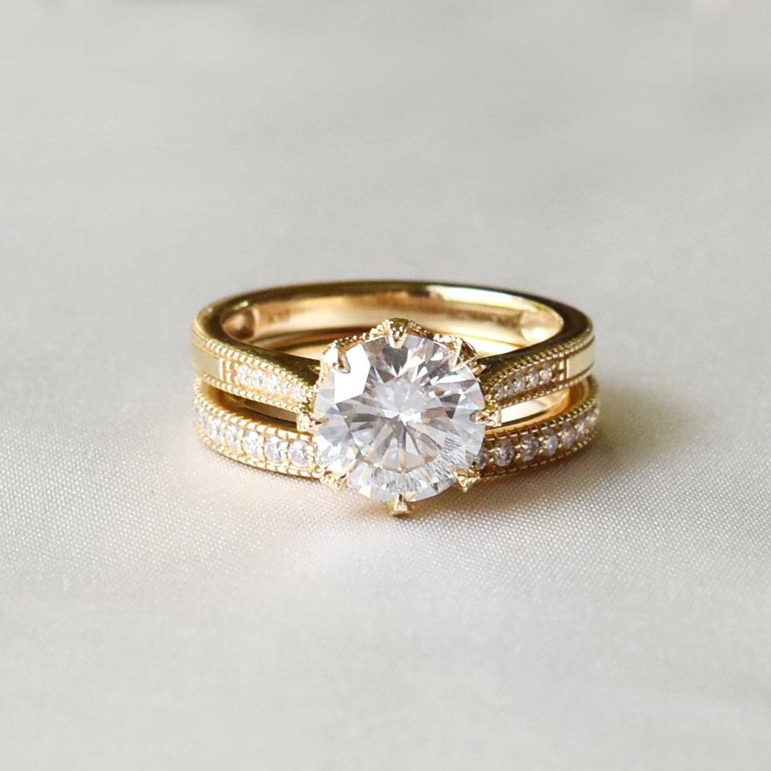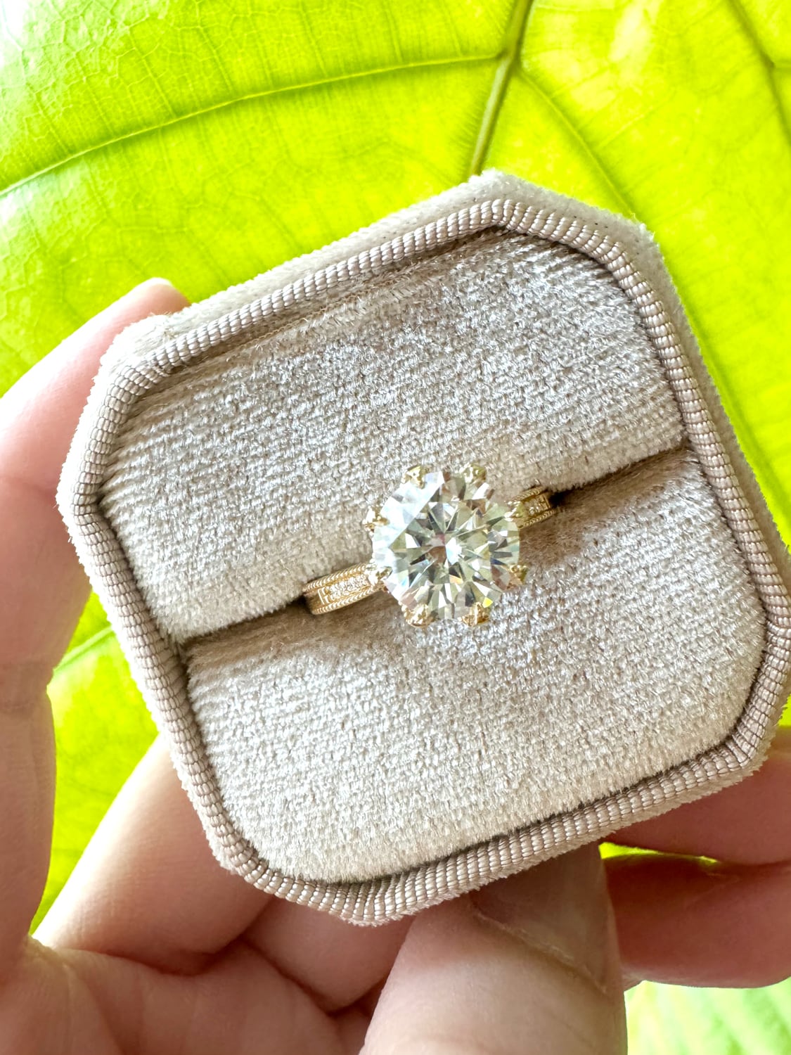 存在感たっぷりの2カラットの一粒ラウンドカットダイヤが豪華なリング。